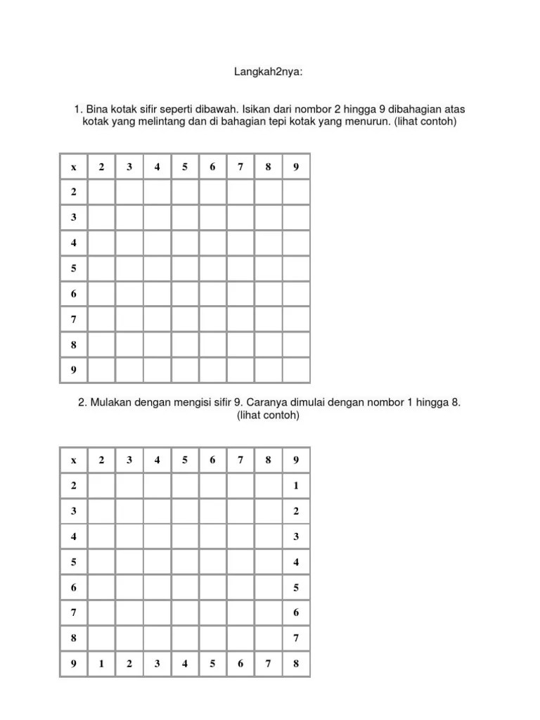 Jom belajar dan pandai sifir 1 hingga sifir 12.0:00 start0:02 sifir 10:49 sifir 21:33 sifir 32:14 sifir 42:57 sifir 53:31 . 1 2 3 4 5 6 7 8 9 2 4 6 8 10 12 14 16 18 3 6 9 12 15 18 21 24 27 4 8 12 16 20 24 28 32 36 5 10 15 20 25 30 35 40 45 6 12 18 24 30 36 42 48 54 7 14 21 28 35 . Interactive worksheet latihan sifir 1 hingga 10. Kotak sifir 1 hingga 9. Belajar sifir secara dalam talian di sini. Boleh download & print ^ ^.
